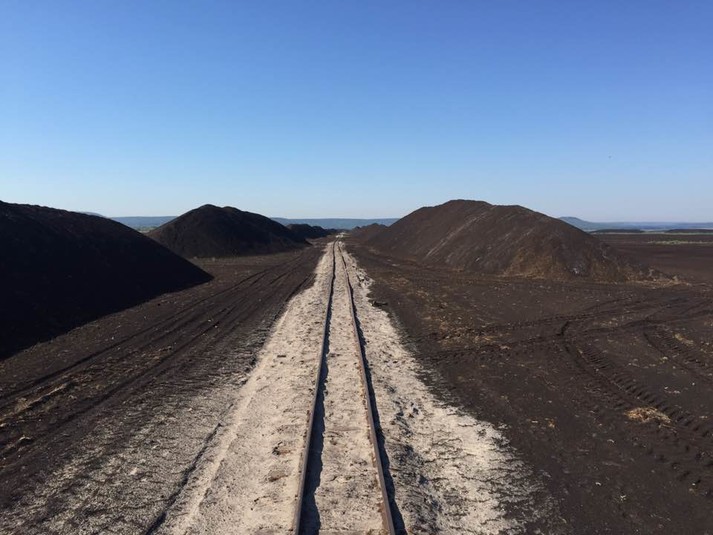 Так виглядає торфяне поле. Зараз сезон збору торфяної крошки. З одного такого поля в рік збирають не менше 120000 тон.