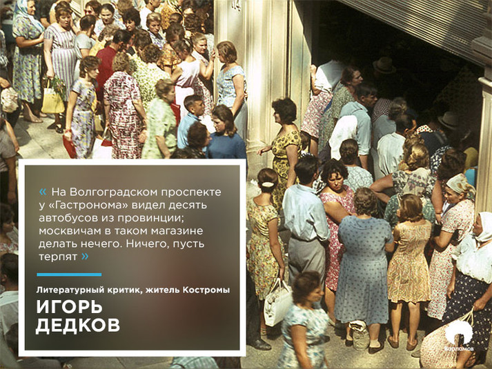 Благодаря архиву дневников сайта Прожито мы собрали впечатления жителей СССР от очередей и скудного ассортимента в магазинах. Большинство воспоминаний записаны литераторами, но в них переданы и слова людей других профессий. Они видели всё своими глазами, а не на фотографиях, как сейчас принято в соцсетях. И не в детстве, а в сознательном возрасте.