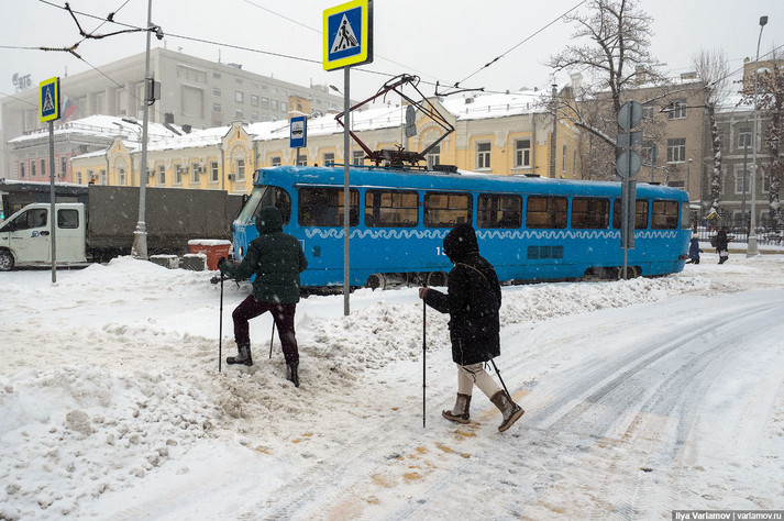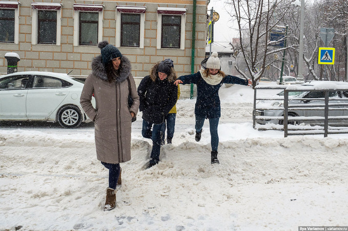 В Москве второй день идет рекордный снегопад! Метеорологи говорят, что так много снега в это время не выпадало за всю историю метеонаблюдений. Город встал в пробках, улицы завалило упавшими деревьями, несколько человек уже пострадали от непогоды, а один даже погиб. Мэрия Москвы и МЧС настоятельно рекомендуют горожанам не то что не парковаться под деревьями, но и вообще по возможности никуда не выбираться из дома.