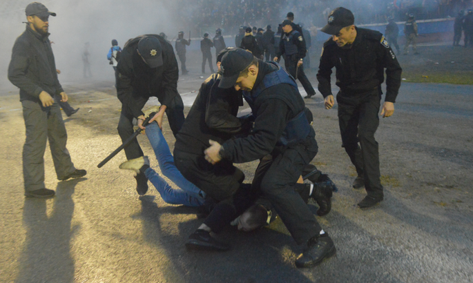 Врешті, коли Василь Дербах, сирота з Коломиї, надзвичайно талановитий хлопчина, забив вдруге, почалося усе найлютіше. «Ми «Карпати» - ви г...ни», додали до своїх зарядів львів'яни і кинулися проривати поліцейські кордони. Спецпризначенців на цю мить на стадіоні вже було немало. І почалося жорстке протистояння з використанням вибухових пакетів, петард та піротехніки. «Ти так за два роки в АТО не постраждав, як тут» - жартували до хлопця з перебинтованою головою друзі згодом, години через півтори після матчу поруч із автобусом, який мав вирушати на Львів. «Справді, побили мене нині неймовірно» - регоче той.