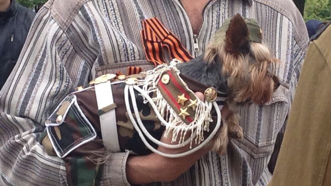 Студенти, школярі й просто молоді люди прикрашають себе георгіївськими стрічками у дивні способи. А мій сусід обліпив свій «Мерседес» наліпками патріотичний-гумористичного змісту повністю - скрізь, де міг