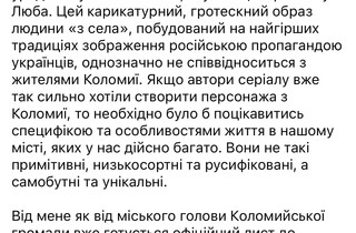 Мер Коломиї Богдан Станіславський протестує проти стереотипізації мешканців свого міста. Одразу признаюсь: серіал не дивилася. Проте традиція зображення українців у телепродукті різного ґатунку ще свіжа в моїй памʼяті. Тому не дивуюся.