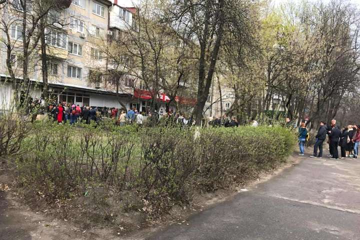 Киев, Шевченковский район, 9 апреля, очередь граждан, желающих зарегистрироваться в качестве избирателей по месту проживания. Типичная картина для Киева в эти дни.