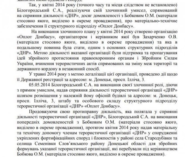 Белогородского партнера которого СБУ считает причастным к преступлениям вначале войны, еще под Славянском, вот выдержка из решения.