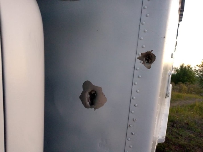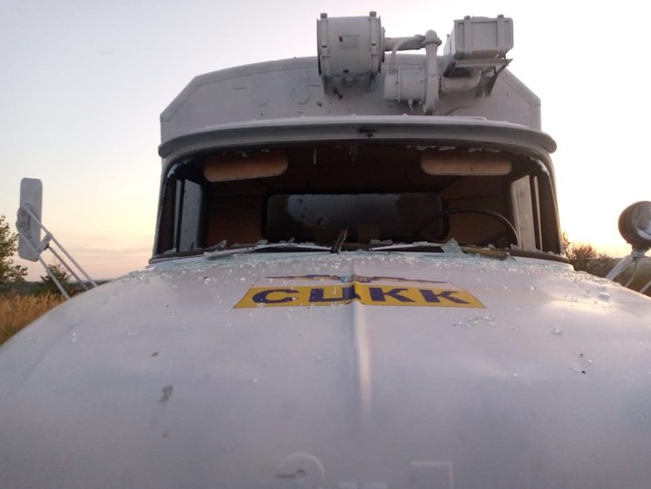 Повідомляється, що вчора о 23:15 з боку позицій формувань Російської Федерації обстріляли автомобіль ЗІЛ-131 білого кольору з розпізнавальними знаками СЦКК у районі Шумів. Обстріл вівся з артилерії калібру 122 мм та міномета 120 мм.