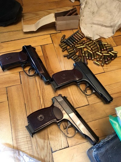 Під час проведення санкціонованих обшуків у помешканнях та гаражних приміщеннях затриманих правоохоронці виявили пістолет-кулемет УЗІ з глушником, дві рушниці, бойову гвинтівку з глушником, чотири пістолети Макарова, пістолет-револьвер, чотири пістолети іноземного виробництва, елементи для переобладнання вогнепальної зброї, інші засоби ураження та велику кількість набоїв різного калібру. Вилучену зброю направлено на експертизу.