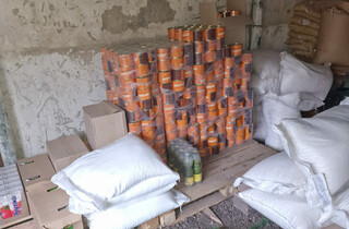 «Працівники ДБР виявили ще один склад на Дніпропетровщині, в якому зловмисники ховали крадену продукцію: згущене молоко, консервовані фрукти та овочі, крупи, макарони, соки, тушковані та інші продукти загальною вагою близько 3 тонн», – йдеться в повідомленні.