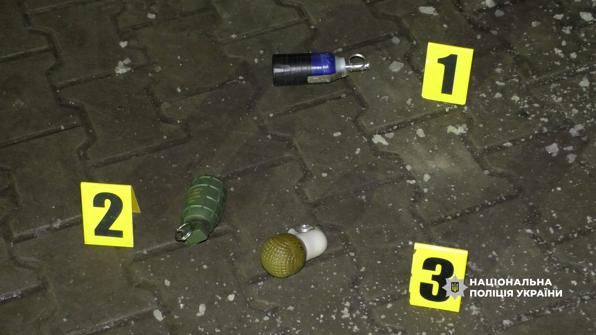 Поліцейські встановили та затримали нападника цієї ж ночі. Крім того, у ході огляду його транспортного засобу виявлено й інші небезпечні предмети.
