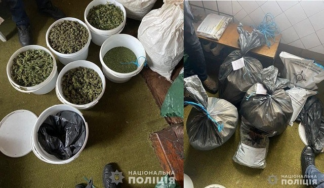Житель Жашкова у своїй оселі під дерев’яними сходами обладнав приховану нішу. За дерев’яним щитом він ховав шість пластикових відер, кожне об’ємом 10 літрів, з вмістом подрібненої речовини рослинного походження схожої на коноплі, та два мішки з листям ймовірно тієї ж речовини. Про це повідомляє пресслужба поліції Черкаської області.