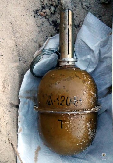 Вночі наряд поліції виїхав за викликом на сімейну сварку. Під час роботи на місці події поліцейські помітили біля будинку гранату РГД-5, присипану піском. 35-річний мешканець Чугуївського району пояснив правоохоронцям, що знайшов боєприпас у лісі, приніс додому та сховав біля будинку без певної мети.
