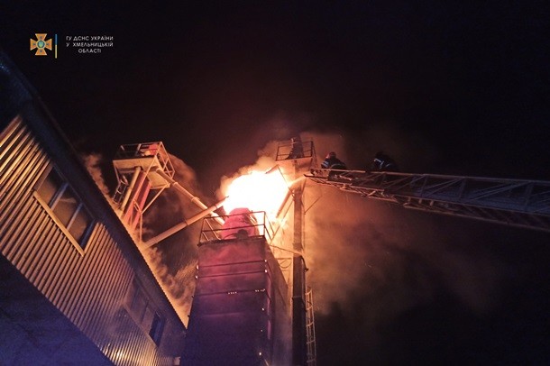 У Хмельницькій області в селі Шумівці у ніч на вівторок загорілася зерносушарка із зерном соняшника. Про це повідомляє пресслужба ДСНС.