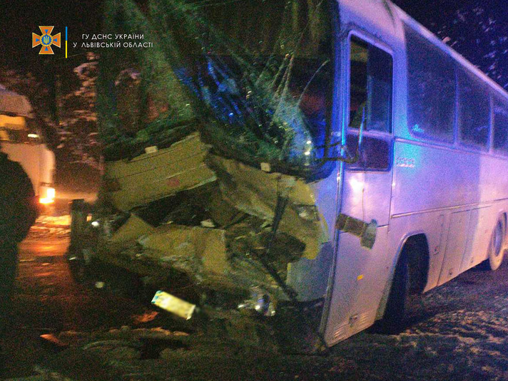 На Львівщині автобус із 20 пасажирами влетів у вантажівку, є травмовані (фото)