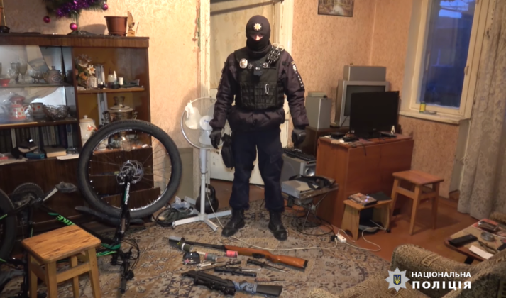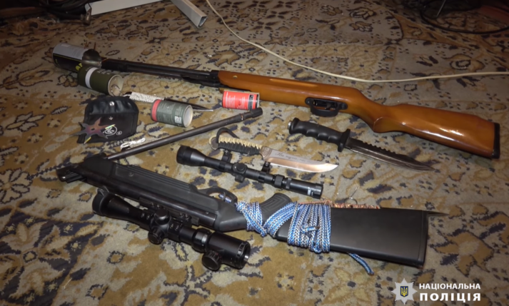 Також повідомляється, що біля будинку було виявлено залишки предмету, зовні схожого на петарду. Піднявшись до квартири, на яку вказали очевидці, правоохоронцям відкрив 32-річний чоловік. У ході огляду його помешкання було виявлено пневматичні гвинтівки, піротехнічні вироби, ножі. Виявлене поліцейські вилучили та направили на експертизу.