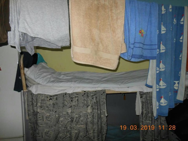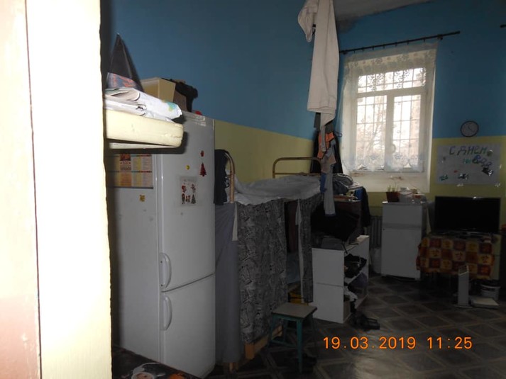 Денісова повідомила, що Вишинський має окреме спальне місце та чисту постіль, він забезпечений питною водою, побутовим приладдям та посудом