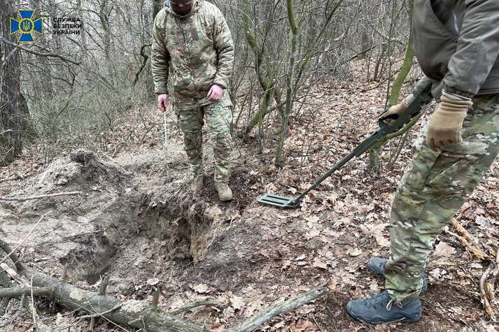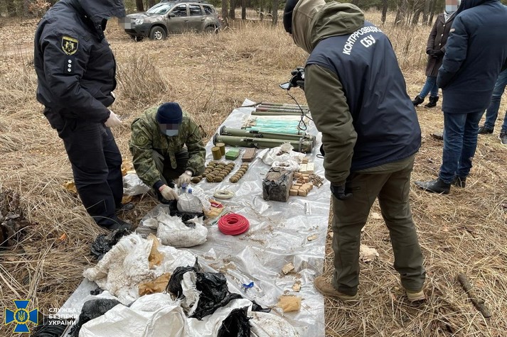 Спецслужба виявила схованку із щільно упакованими військовими засобами ураження російського виробництва