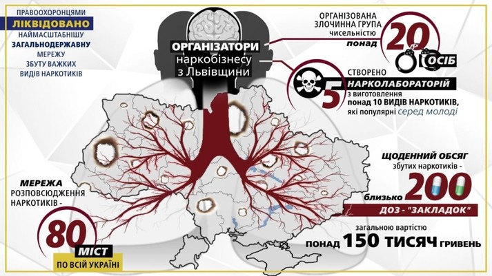 «Викрито злочинну організацію, яка розповсюджувала наркотики по всій країні, а також – за кордоном. Центр організації був саме у Львівській області, однак масштаби діяльності злочинців вражають», - написала вона.