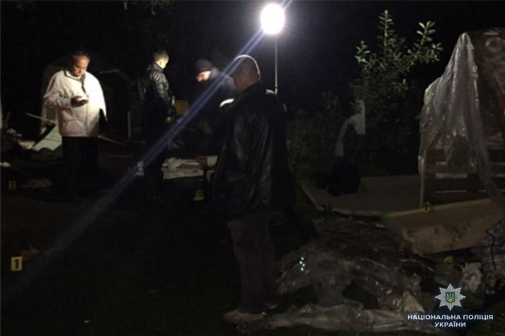 Окрім ножа, яким було нанесено поранення загиблому, з місця злочину вилучені й інші докази, зокрема предмети, що їх зловмисники використовували для нанесення ушкоджень жителям табору.