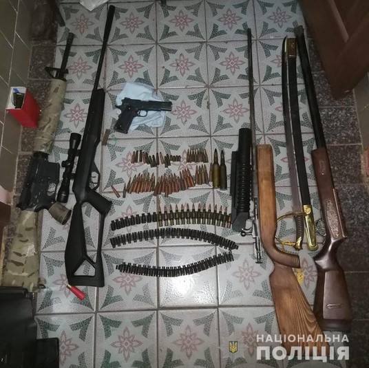 Крім цього, правоохоронці вилучили у учасників злочинної групи нелегальну зброю та боєприпаси: 3 нарізних гвинтівки; 4 пістолети з набоями до них; саморобну мисливську рушницю; обріз мисливської рушниці; 3 гранати; 100 грамів вибухової речовини пластид та майже 100 набоїв різного калібру.