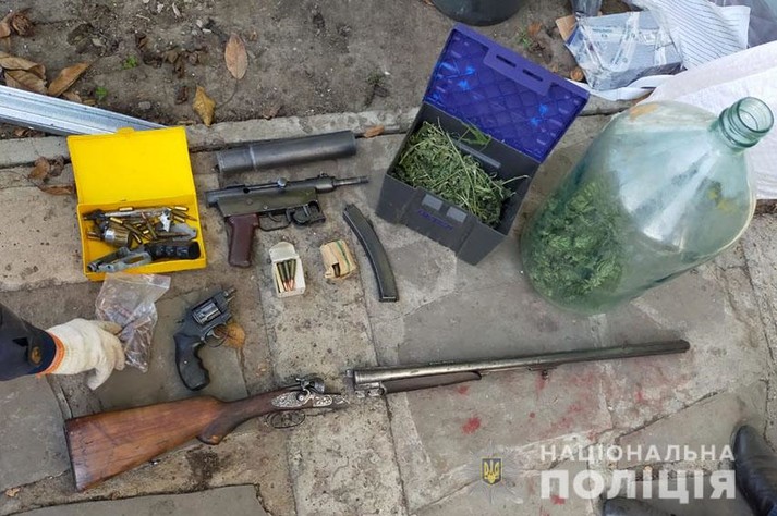 Чоловік вдома переробляв рослини конопель в марихуану та фасував для подальшого збуту. В ході слідчих дій правоохоронці вилучили місткості з марихуаною, гладкоствольну та мисливську рушниці, автомати, набої різного калібру, а також вибухонебезпечні предмети.