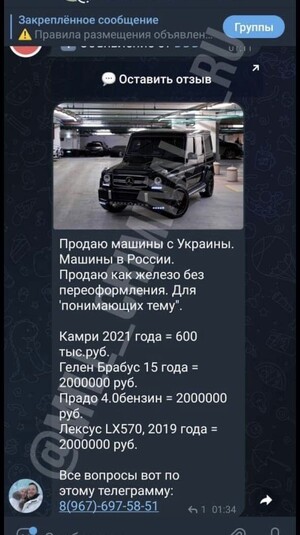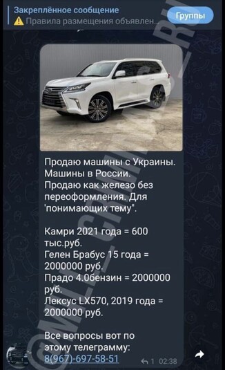 Відповідні оголошення з’явилили в російських телеграм-каналах. Автівки викрали у мирних українців.