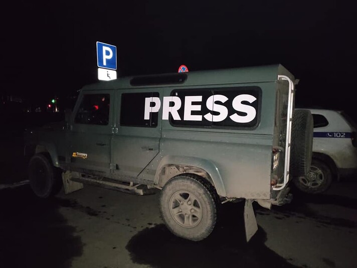 Повідомляється, що кілька куль влучили в скло і поранили журналіста. Чоловік отримав пошкодження обличчя та передпліччя.