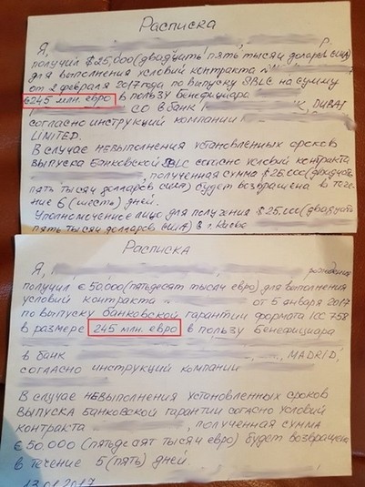 Під час обшуків за місцем проживання учасників угруповання в Києві, Чернівцях, Одесі та Вознесенську правоохоронці вилучили фінансову документацію, що підтверджує факти підробки банківських гарантій і незаконне перерахування викрадених коштів через популярні банківські системи. Співробітники СБУ України також виявили електронну переписку, що доводить легалізацію викрадених коштів, зокрема від контрагентів, пов'язаних зі спецслужбами РФ.