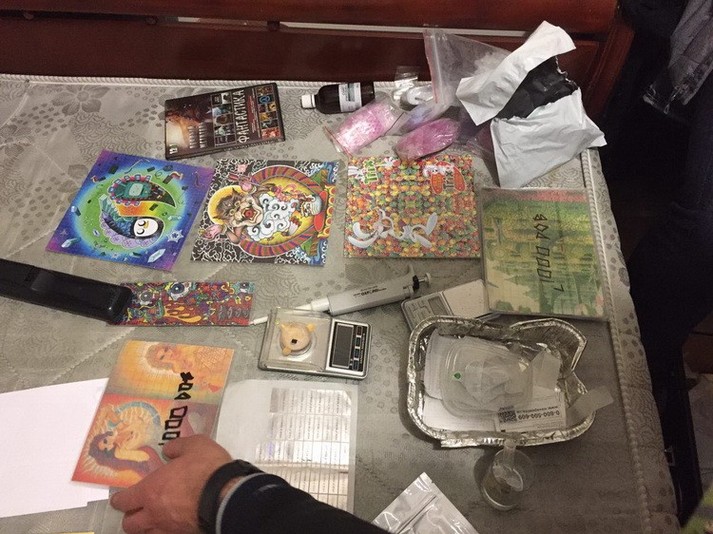 Під час проведення обшуків в орендованій квартирі оперативники вилучили ще понад три тисячі «марок» ЛСД, сто пігулок психотропної речовини МДМА, майже шістдесят грамів порошку амфетаміну та МДМА, спеціальне обладнання для фасування та зважування наркотиків.