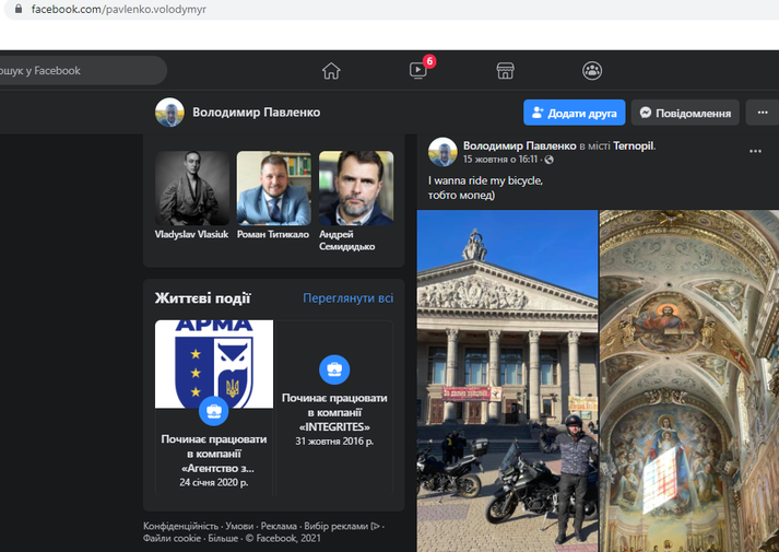 Інформація про далекі поїздки Володимира Павленка стала відома із соціальних мереж. 15 жовтня 2021 року о 16:11 він публікував на своїй сторінці у Facebook своє фото в місті Тернопіль (а це 420 км від Києва, де зареєстрований Павленко).