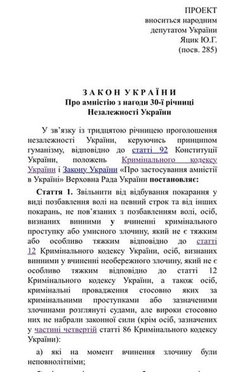 За словами Черняка, 16-річний «мажор» підпадає під амністію за проєктом закону про амністію до 30-ї річниці Незалежності України. Наразі цей проєкт знаходиться на розгляді Верховної Ради, його можуть прийняти вже незабаром.