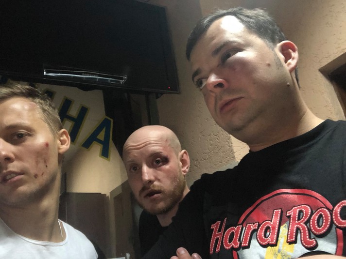 «Нападники представилися працівниками «органiв», до і після інциденту погрожували фізичною розправою i використанням службового становища у разі звернення до МВС. На місце злочину прибув патрульний загін Солом'янського району. Був затриманий чоловік, попередньо причетний до інциденту та, з його слів, брат головного зачинщика побиття. Особу мало бути встановлено органами МВС після затримання», - сказано у заяві.