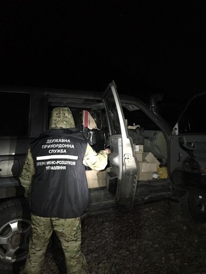 Під час огляду автівок, правоохоронці виявили короби з майже 4,5 тис. пачками цигарок, авто- та мотозапчастинами, а також з атрибутикою російських силовиків – кокарди, зірочки на погони, триколори тощо.