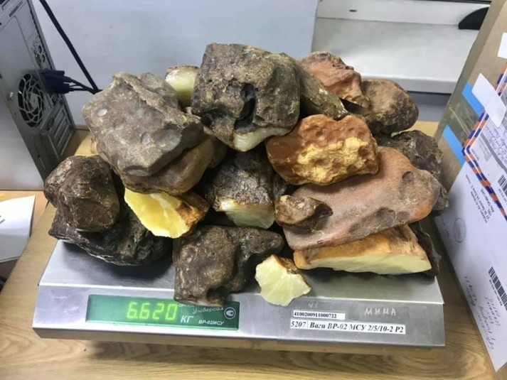 Як зазначається, з двох міжнародних поштових відправлень, які прямували з України до Катару та ОАЕ, вилучено понад 12 кг необробленого крупнофракційного бурштину жовто-коричневих відтінків різного розміру та фантазійних форм.
