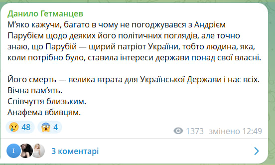 У соцмережах з’являється дедалі більше дописів зі словами підтримки для родини Парубія. Друзі та соратники згадують його як відданого справі України політика, який завжди стояв на захисті державних інтересів.