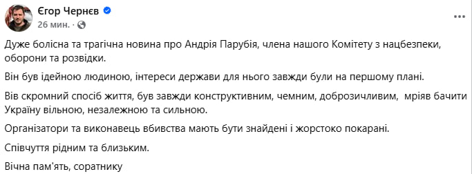 Зауважимо, 30 серпня, у Львові вбили відомого громадсько-політичного діяча Андрія Парубія. За повідомленням правоохоронців, близько опівдня до поліції надійшло повідомлення про стрілянину в Сихівському районі міста.