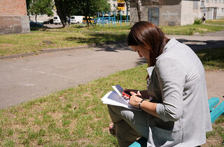 «Книжка починається з того, де моя дитина говорить: «раніше ми з татом проводили багато часу разом. Кожного дня ходили на майданчик, гралися, але одного дня почали лунати дивні звуки, як виявилося сиренами повітряної тривоги. Тато вдягнув дивний зелений одяг і став з'являтися вдома дуже рідко». І потім ми розкручуємо 11 розділів. Кожен розділ наступний, він про якусь поїздку. Поїздку на прифронтові території», – ділиться жінка.
