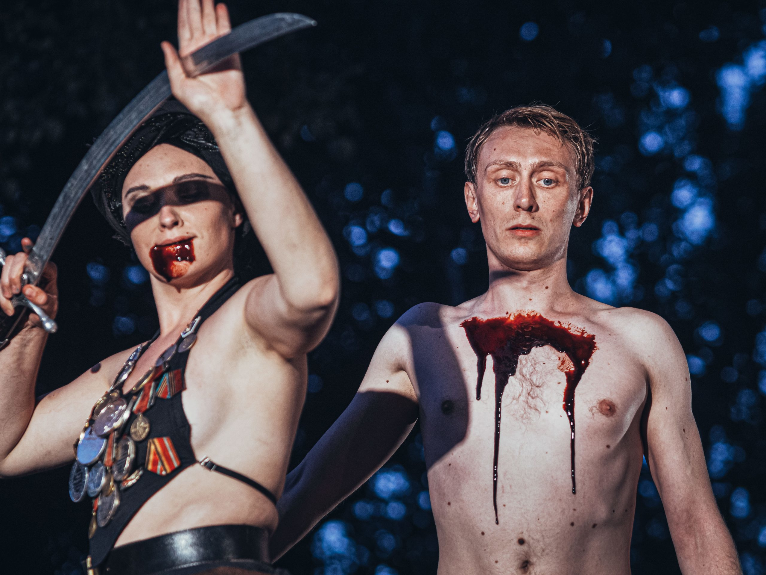 І от, на тобі, на екваторі літа, фактично вже у мертвий сезон, Дикий театр голосно запросив розморених спекою глядачів на пленер, на свіже повітря, на прем’єрні проєкти «Червоне, чорне і знову червоне», а також «Кайдаші. 2.0» (режисер Максим Голенко).