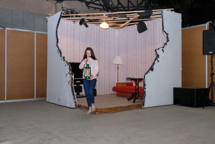 У спектаклі дев’ять локацій, кожна з яких має свій індивідуальний зміст. Глядачі не сидять на місці, а пересуваються разом з акторами. Це дозволяє краще зрозуміти життя у зоні збройного конфлікту.