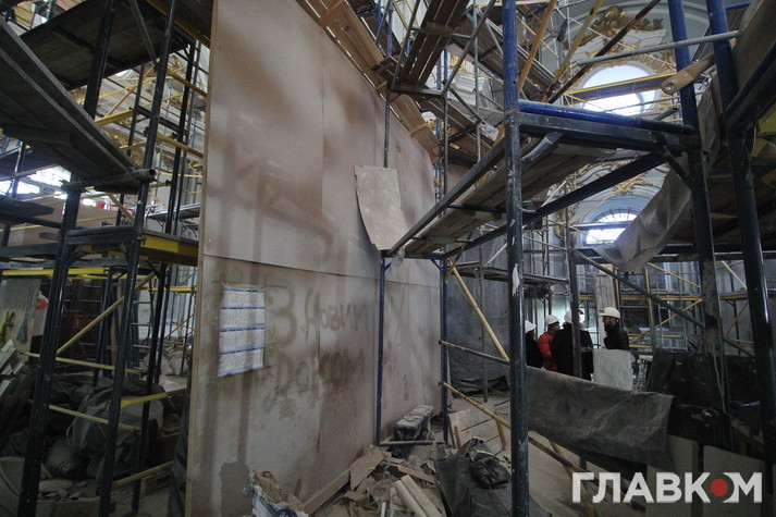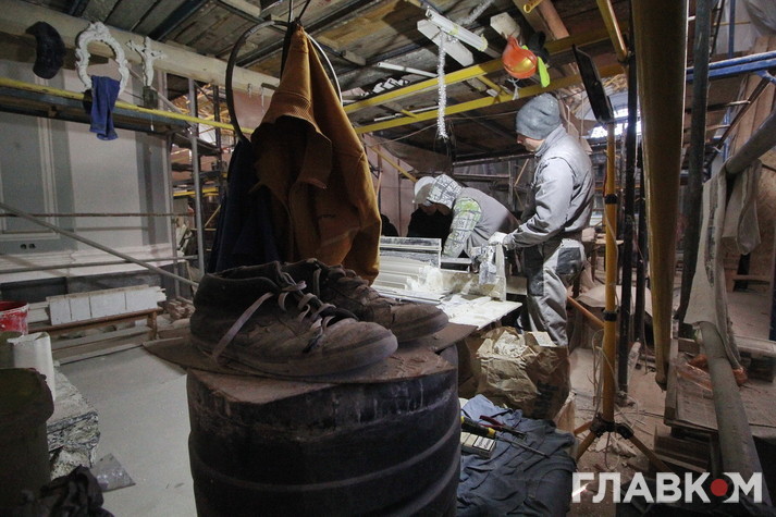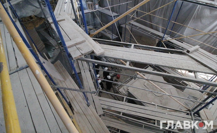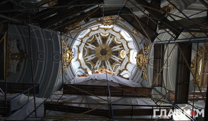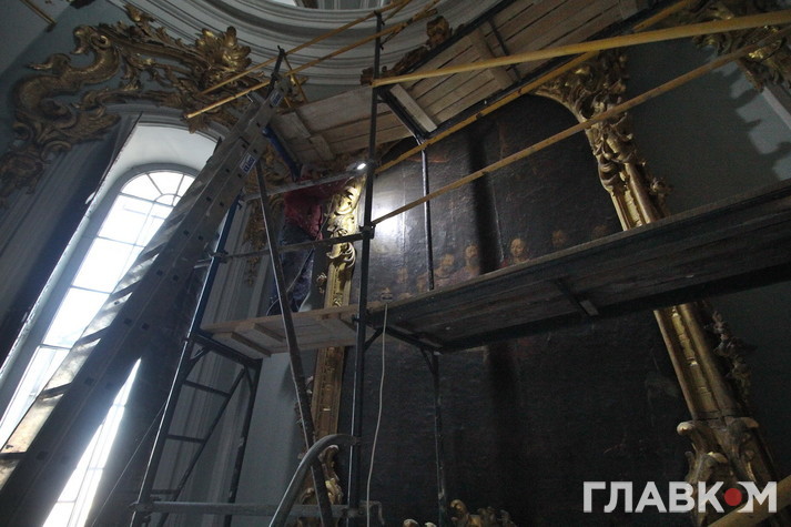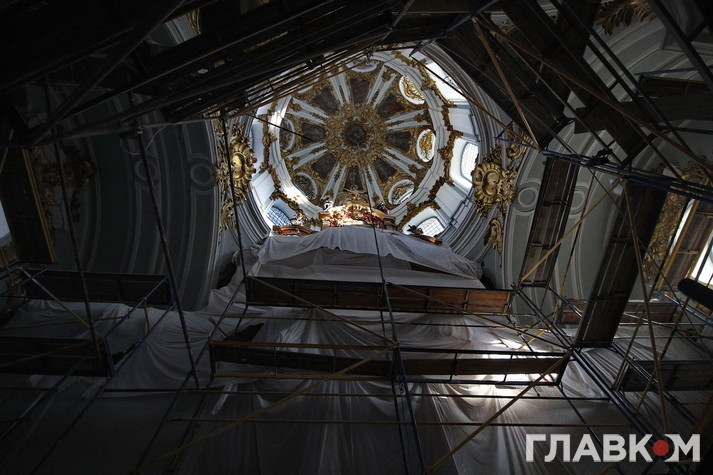 Реставрують нині буквально все: різьблення по дереву, ікони, ліпнину, ікони, картини у церкві. Всі ці роботи виконують кілька груп фахівців на чотирьох ділянках. Безпосередньо на об’єкті, у цехах, адже потрібні якісь металеві вироби постачати, а також в лабораторії, в реставраційних майстернях. Всього 35 працівників, не враховуючи керівництва, проектантів, постачальників, розповідає Вадим Кириленко, перший заступник генерального директора, який опікується реставраційними роботами. Порівняно невелику кількість реставраторів пояснюють особливостями процесу реставрації. «Художник-реставратор повинен працювати над іконою на самоті. Якщо їх удвох з колегою поставити, роботи не буде, вони повбивають один-одного», – жартує пан Кириленко. «Тут немає масовки, де робітники бігають як мурахи. У реставратора має бути зона комфортності для повного зосередження на тонкій роботі», – пояснює Ігор Устименко, головний інженер підрядної організації «Екстер’єр-Будсервіс», який працює на об’єкті уже третій рік.