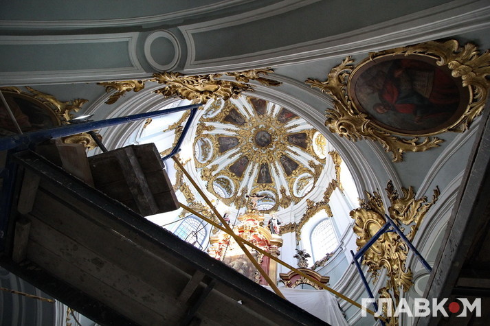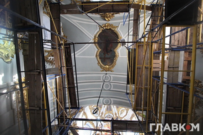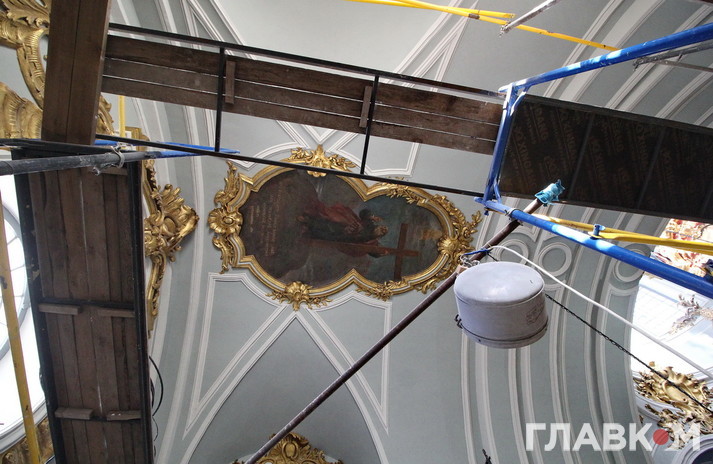 Зверху під стелею храму уже встановлені сучасні італійські ліхтарі, які не випромінюють тепло, світло від яких не шкодить живопису на відміну від старих радянських величезних ліхтарів, які негативно впливали на мікроклімат у церкві. «Раніше в церкві було як на стадіонах», – жартують музейники з радянського ліхтаря у 500 Ватт.
