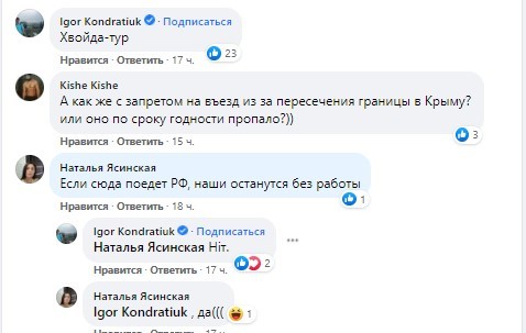 «Хвойда-тур», – написав у коментарі Кондратюк.
