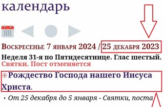 Воно за юліанським календарем – 25 грудня і у Російській православній церкві, і в інших, які залишилися на цьому календарі. На доказ цьому офіційна інформація РПЦ, де чорним по білому вказана у дужках правильна дата свята.