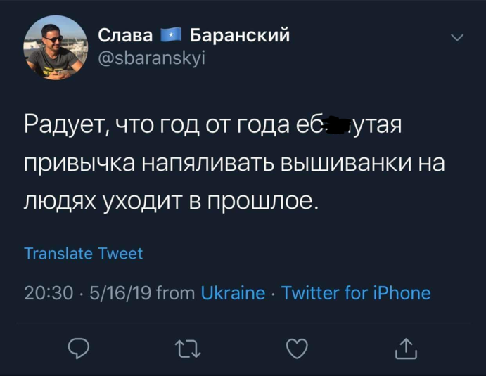 Слава Баранський образив всіх українців, опублікувавши скандальний допис