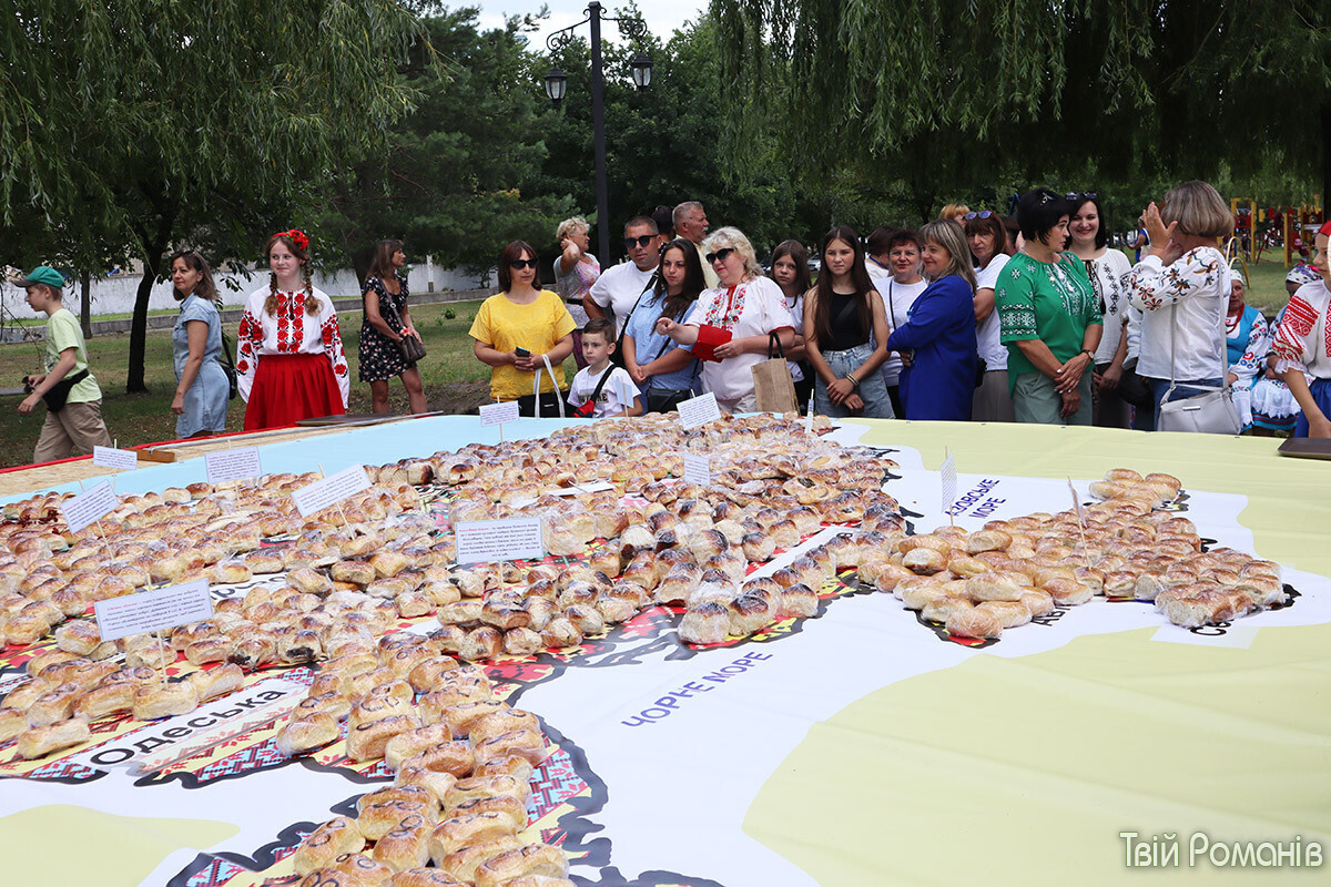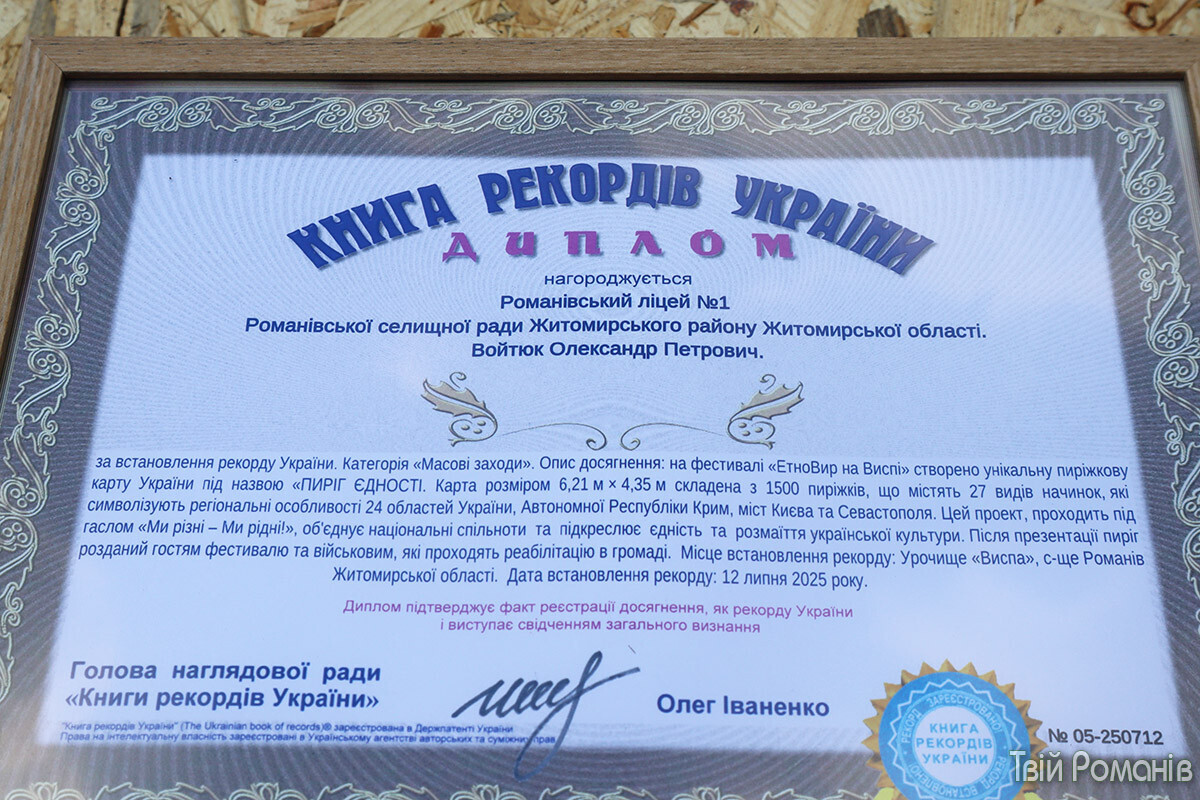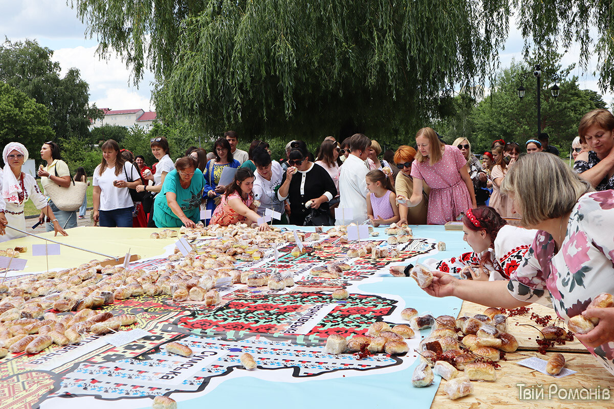 У селищі Романів, що на Житомирщині, виклали карту України з пиріжків і встановили національний рекорд. Зробили це під час фестивалю «ЕтноВир на Виспі». Про це пише «Главком» із посиланням на «Твій Романів».
