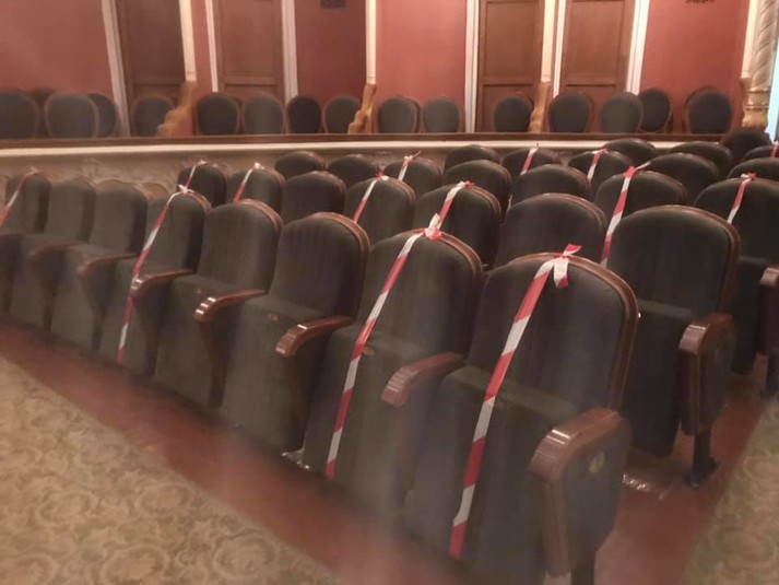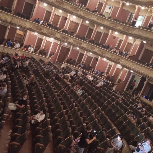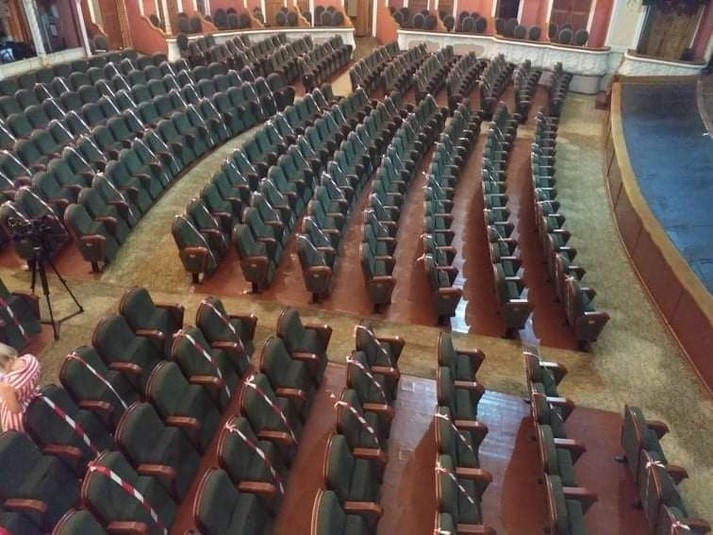 На опублікованих в соцмережах фото видно, що завжди заповнений зал театру був майже порожній через карантинні правила через коронавірус.