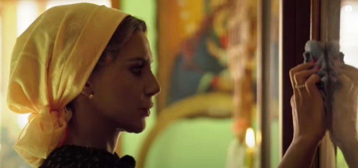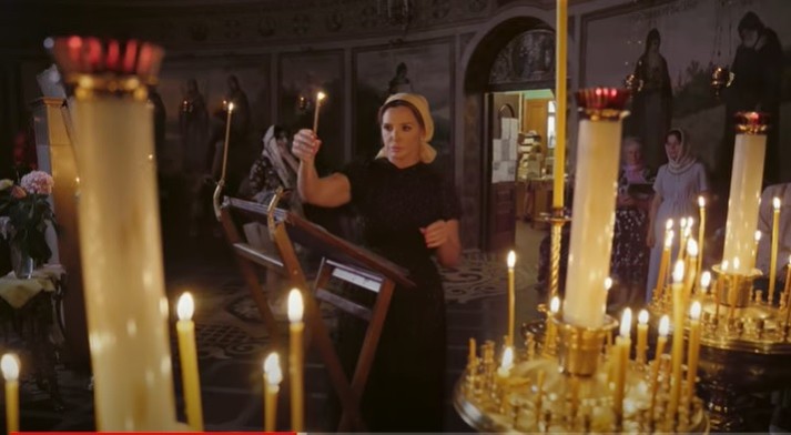 Телеведуча та дружина проросійського політика Віктора Медведчука Оксана Марченко під час свого візиту у Введенський чоловічий монастир взялася витирати ікони. Такий епізод увійшов до четвертої серії її пропагандистського фільму «Паломниця».