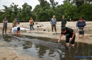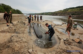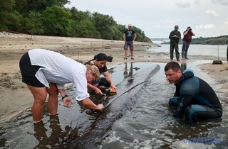 Після обміління Дніпра на березі Хортиці знайдено тисячолітній дубовий човен (фото, відео)