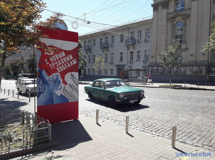 На час зйомок ряд установ, магазинів змінив вивіски. Зокрема, розташований в цьому кварталі «Укрінформ» став «Музичною школою №32», напроти агентства замість одного зі звичних магазинів з'явився кіоск «Табак», біля якого знімається цілий ряд сцен. Від вулиці Хрещатик по вулиці Богдана Хмельницького вгору-вниз рухаються автомобілі, автобуси та інший транспорт періоду 1980-х років. На лайтбоксах, у вітринах розміщено плакати того часу, на тротуарі виставлено стенди з газетою «Правда».