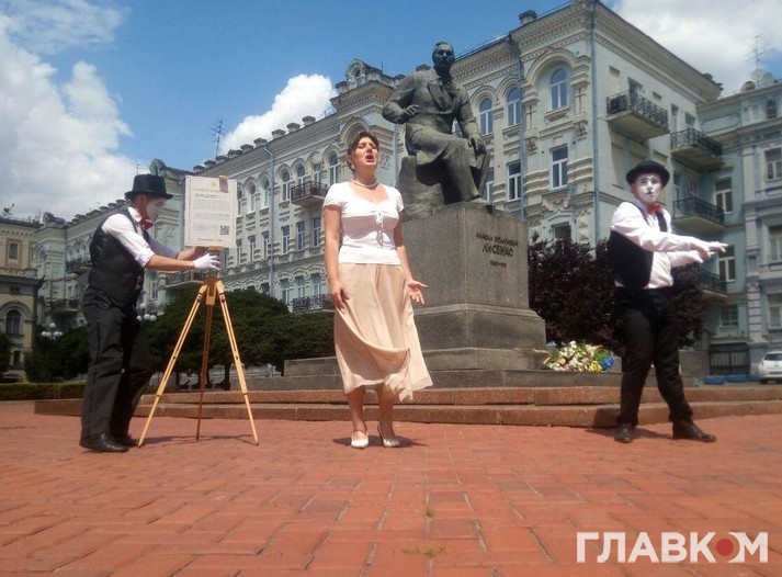 Урочисте встановлення пам’ятних знаків відбувалося у супроводі акторів, які відтворювали моменти життя видатних діячів української культури та їхньої співпраці з вчителями.