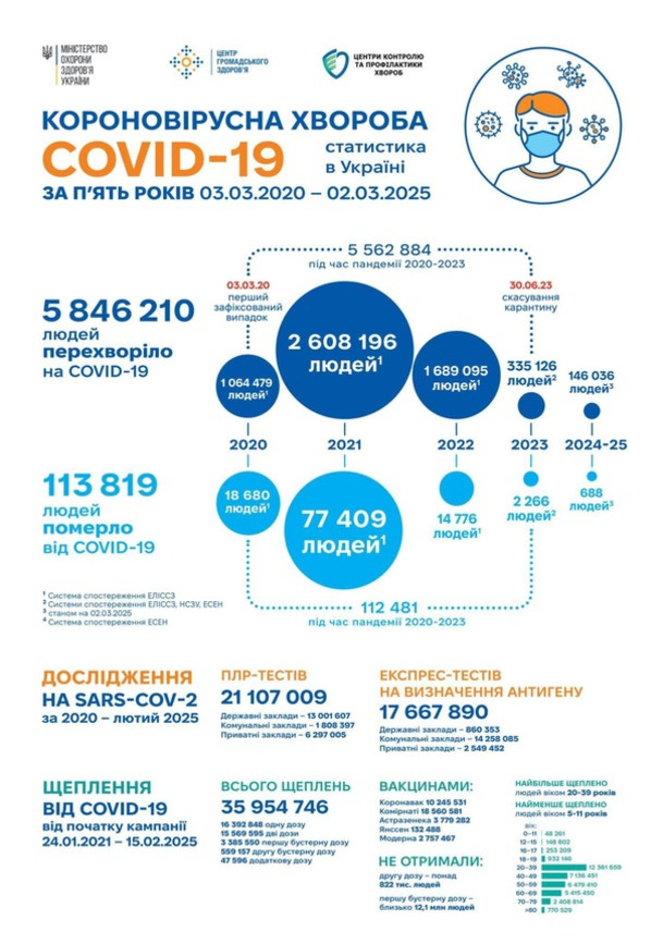 - Скільки українців за пʼять років захворіло на Covid-19: МОЗ підбив підсумки пандемії