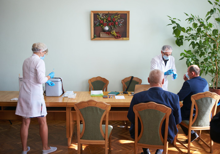 За даними місцевого видання «Курс», пункт вакцинації облаштували у фоє міськради. Депутатів щепили вакциною Pfizer.